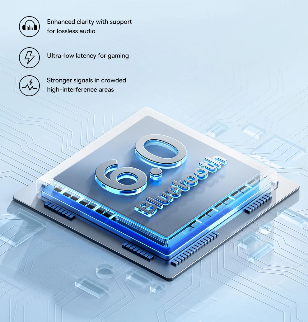 5. Bluetooth 6.0 perfeito: Desfrute de latência ultrabaixa, qualidade de áudio aprimorada e conectividade sem interferências graças ao mais recente chip Bluetooth 6.0.Transmita, jogue ou ligue - sem bandeira e suave.